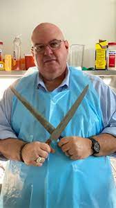 He started his pathology career in Florida before moving to Alabama and finally Texas, all the while seeking a sharp, sturdy knife that would make clean cuts in body parts photographed for presentation in court. For years, he made do with a sanitary food service knife typically used to carve wheels of hard cheese.